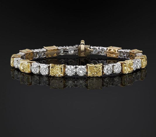 Two-Tone Yellow Sapphire Tennis Bracelet with Radiant & Round Cuts