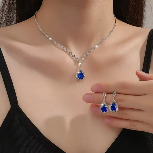 Elowen | square pendant necklace & teardrop earrings set