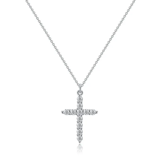 Classic Round Cut White Sapphire Cross Necklace