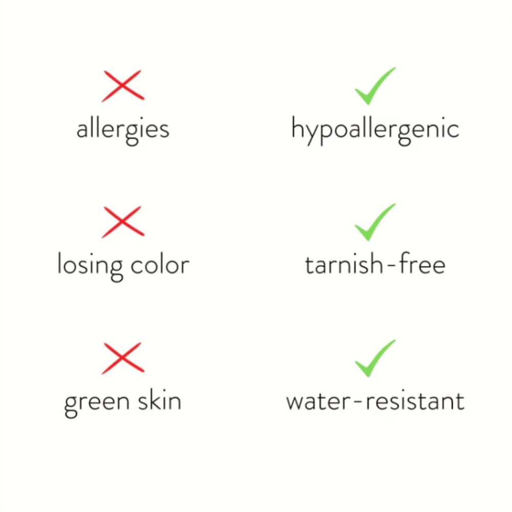 Made with waterproof stainless steel, you will never have to worry about green fingers, fading or tarnishing ever again.