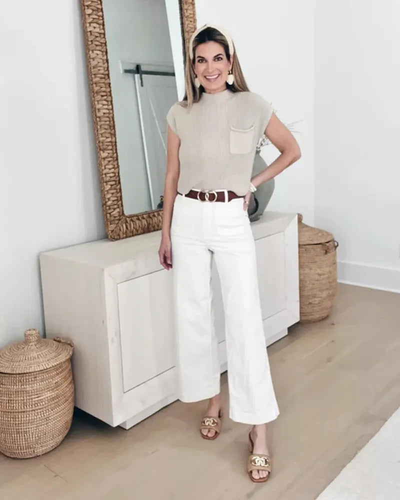 Brighten up your spring and summer wardrobe with these Cropped Wide-Leg Jeans with Pockets. They will ensure all-day comfort without compromising on style.