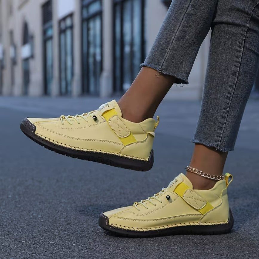 Flat heel design for all-day comfort and stability