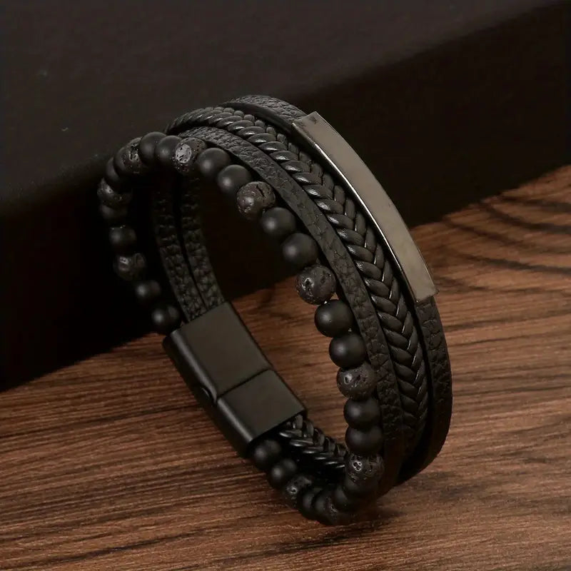 The Tiger Eye Woven Faux Leatherette Bracelet exudes refined masculine elegance with a magnetic amber glow. Its balanced proportions sit comfortably on the wrist for versatile styling.