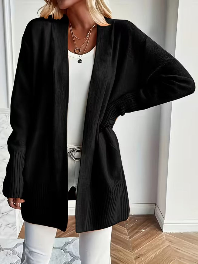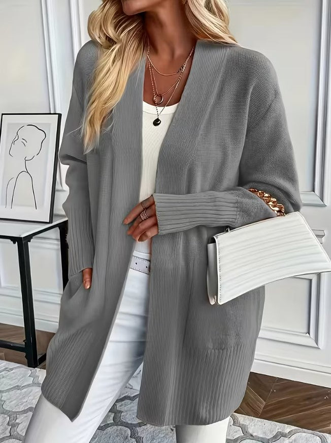 The Nelly cardigan is a stylish and cozy layering piece designed for effortless elegance during fall and winter. Featuring a V-neck, long sleeves, drop shoulder design, and loose fit, this solid color sweater combines comfort with modern fashion for everyday wear or semi-formal occasions.